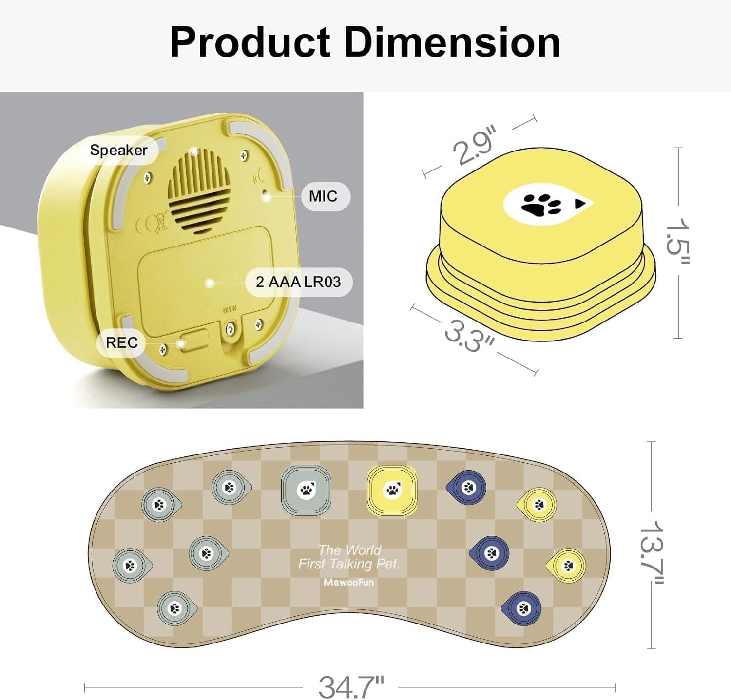 - Dog Talking Buttons with Mat & Manual:Dog buttons are a fantastic tool for training your furry friend. Our buttons have top quality microphones and speakers, so you can get the clear sound and better volume